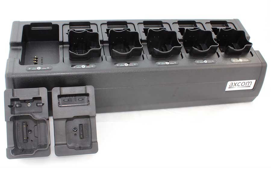 Dieses Axcom 6+6-Stationen Tischladegerät ist mit Ladeschalen für Motorola CP040, CP150, CP200, DP1400, R2, H4970LI, H4851, H4497LIausgestattet.