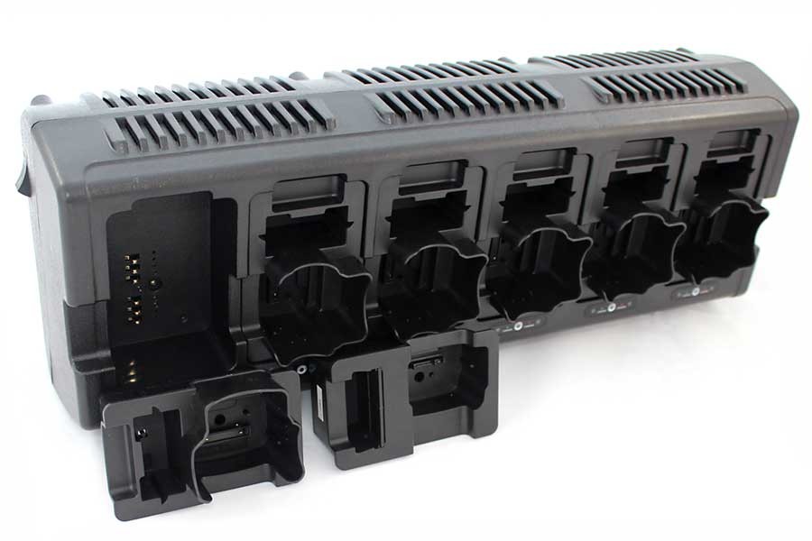 Dieses Axcom 6+6-Stationen Tischladegerät ist mit Ladeschalen für Motorola GP900/HT1000/XTS ausgestattet.