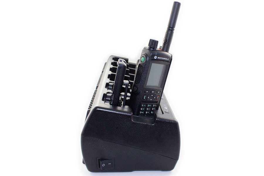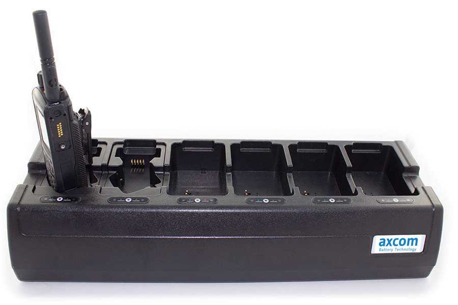 Dieses Axcom 6+6-Stationen Tischladegerät ist mit Ladeschalen für Motorola MTP6650, MTP3550 und MXP600 ausgestattet.