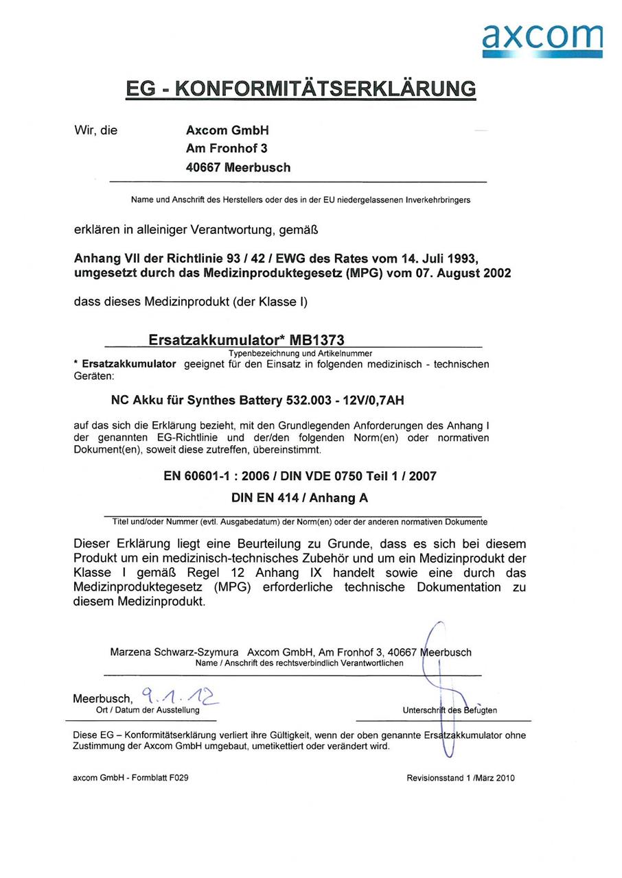 NC Akku für Synthes Typ 532.003 - 12V/0,7Ah