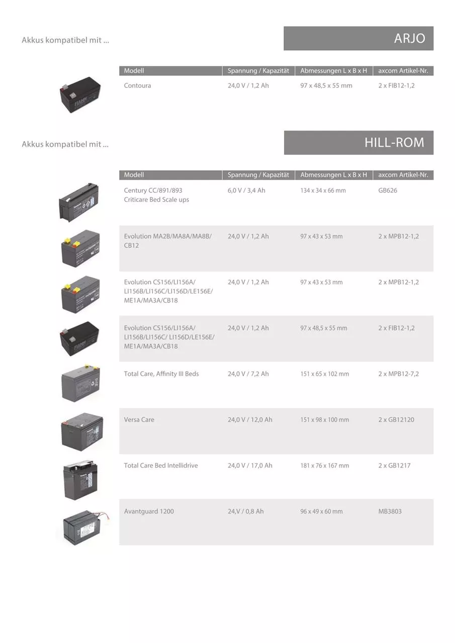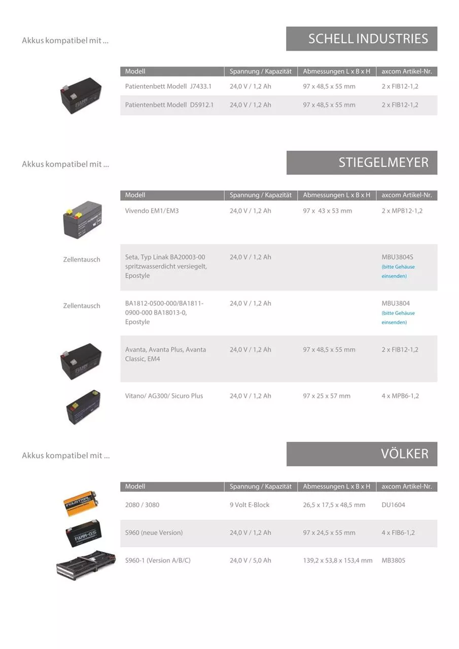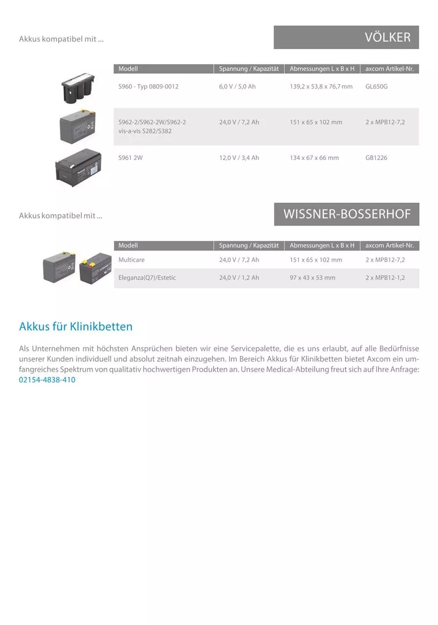 Original Axcom Akku für Patientenbetten der Serie Völker S960-1 (Version A/B/C)