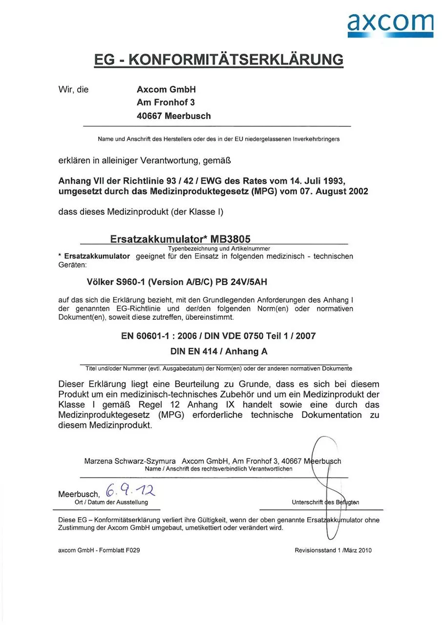 inkl. Konformitätserklärung nach MPG