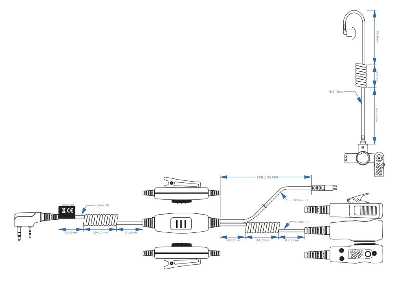 Schallschlauch-Headset 2 Kabel-Lösung für Kenwood TK250, TK260, TK270, TK360, TK370, TK2170, TK3170