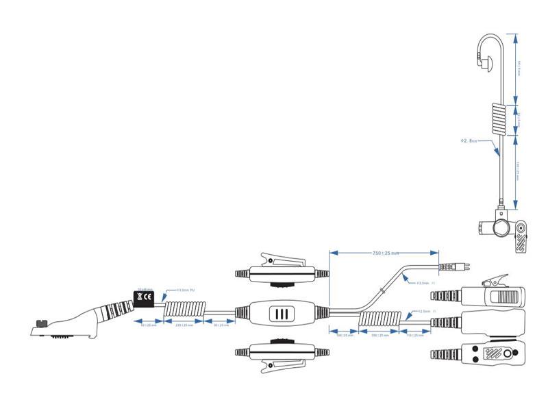 Schallschlauch-Headset 2 Kabel-Lösung für Motorola MTP6650, MTP850FuG/S, MOTOTRBO DP3000, DP4000