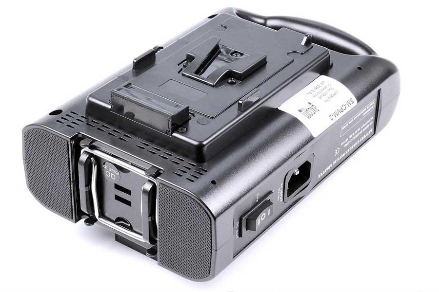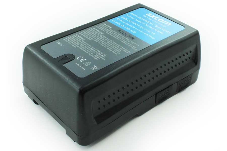 2er Pack Lithium-Ionen V-Mount Akku mit 150Wh und 2-Kanal Ladegerät mit eingebautem Netzteil.