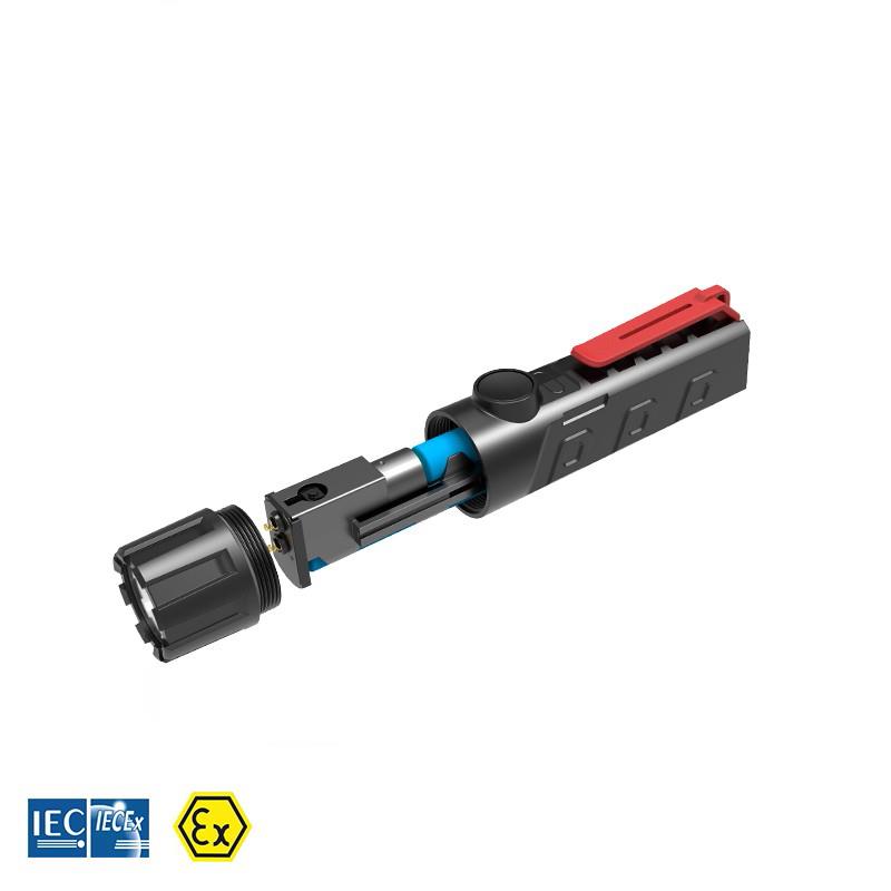 ExMP31N ist eine eigensgesicherte explosionsgeschützte LED-Taschenlampe. Sie ist geeignet für Zone 0/1/2 und Zone 21/22. Das Gehäuse besteht aus Hochleistungsnylon, verfügt über ein benutzerfreundliches Design und ist antistatisch, leicht, stoßfest, korrosionsbeständig, ölbeständig und alterungsbeständig. Der rote Clip der Lampe kann abgenommen werden. Die Taschenlampe wird mit 3 AA-Alkaline-Batterien betrieben wodurch Ausfallzeiten minimiert werden.Die hohe Leuchtstärke der Taschenlampe bleibt auch im Laufe des Entladezyklus erhalten. Passend zur Taschenlampe bieten wir einen Gürtelclip an.